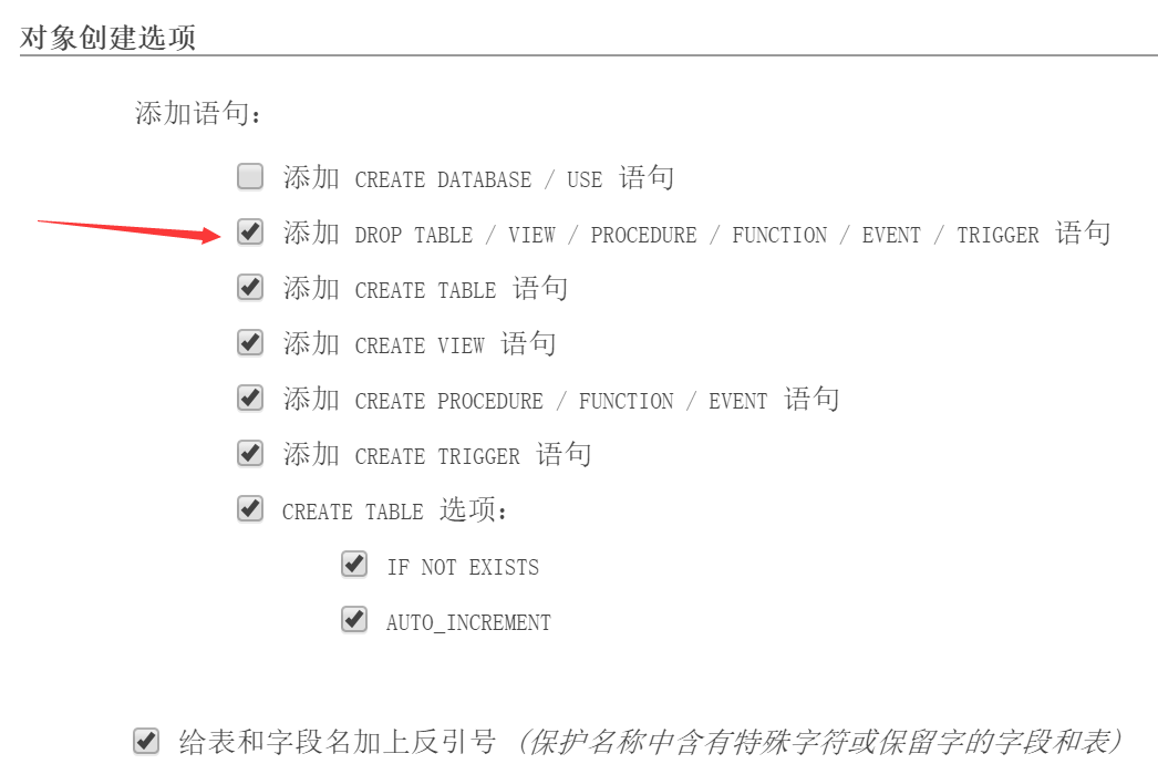 如何使用 phpmyadmin 导出/导入 blog 数据库 2015/02/09 • boj 在 phpmyadmin 导入数据库的时候,一些朋友遇到 Duplicate entry '1' for key 'PRIMARY' 的错误。这是由于数据库里已经有数据,与待导入的数据存在冲突。 在导出数据库时,使用 “自定义” 添加以下选项即可解决该问题。该选项会把数据库中已存在的表名相同的表删除,避免表结构和数据的冲突。 感谢 高三山 的问题反馈。