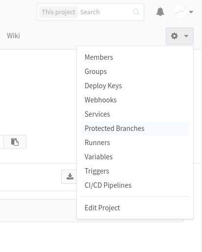 现在临时的解决方案是手动关闭master分支的protected选项,从网页的右上角可以进入”Protected Branches”的设置页面。